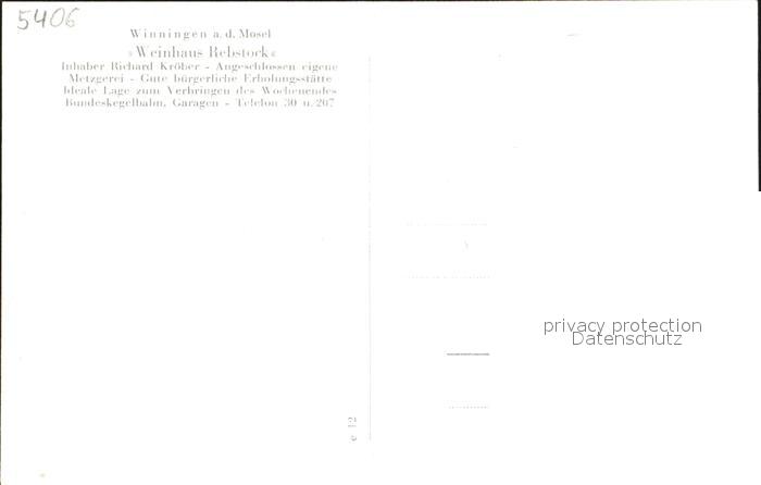 32179364 Winningen Mosel Hotel-Weinhaus Rebstock postalisch nicht gelaufen Erhaltung siehe scans KatCode: 11110007137230
