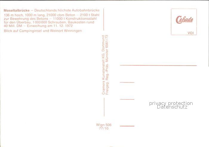 72421870 Winningen Mosel Moseltalbruecke Deutschlands hoechste Autobahnbruecke Fliegeraufnahme postalisch nicht gelaufen Erhaltung siehe scans KatCode: 11110007137230