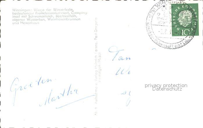 72081831 alte Postkarte Winningen Mosel Panorama Weinanbaugebiet Wiege der Winzerfeste Weinflasche postalisch gelaufen Erhaltung siehe scans KatCode: 11110007137230