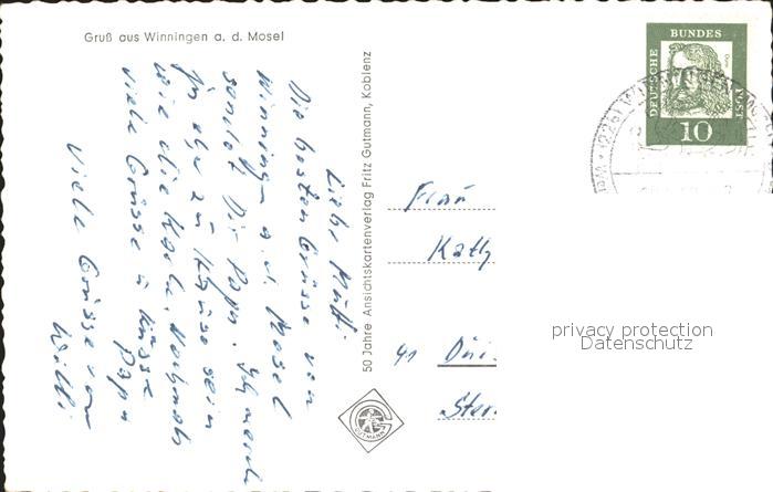 72201006 alte Postkarte Winningen Mosel Partie an der Mosel postalisch gelaufen Erhaltung siehe scans KatCode: 11110007137230