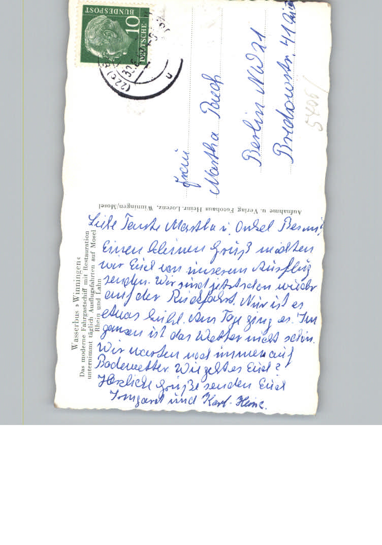 31138420 Winningen Mosel Wasserbus postalisch nicht gelaufen KatCode: 11110007137230