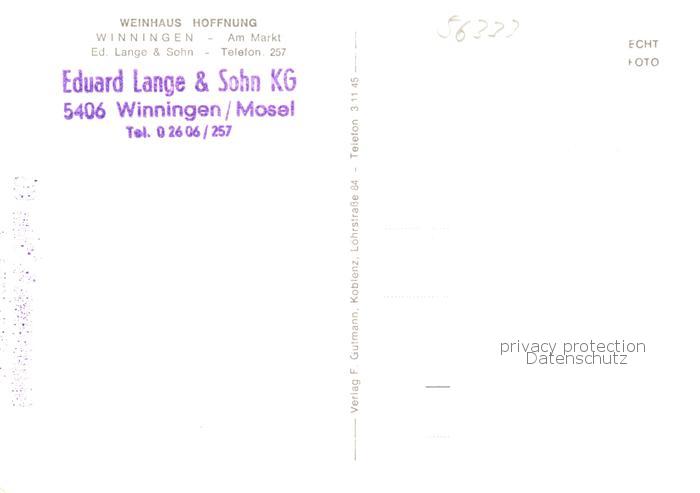 73858256 Winningen Mosel Weinhaus Hoffnung postalisch nicht gelaufen Erhaltung siehe scans [FriedD77] KatCode: 11110007137230