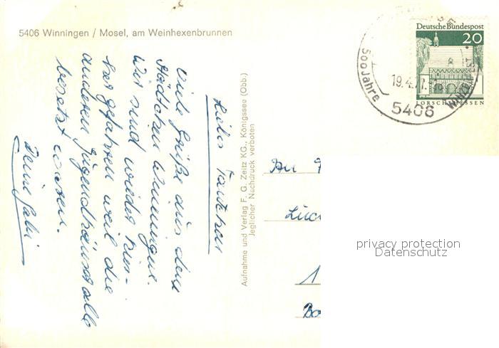 73667806 alte Postkarte Winningen Mosel Weinhexenbrunnen postalisch gelaufen Erhaltung siehe scans [WerneD78] KatCode: 11110007137230