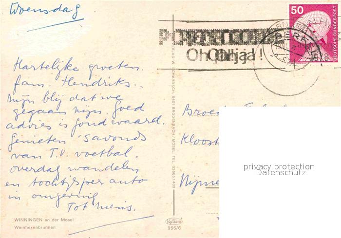 72771435 alte Postkarte Winningen Mosel Weinhexenbrunnen postalisch gelaufen Erhaltung siehe scans [WerneD78] KatCode: 11110007137230