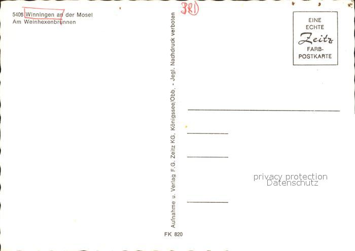 72506089 Winningen Mosel Weinhexenbrunnen postalisch nicht gelaufen Erhaltung siehe scans KatCode: 11110007137230