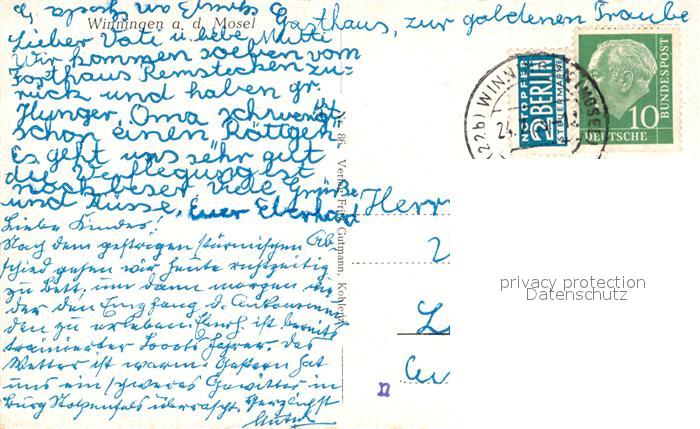 73282430 alte Postkarte Winningen Mosel postalisch gelaufen Erhaltung siehe scans [NatalD47] KatCode: 11110007137230