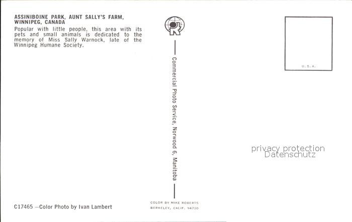 Winnipeg Assiniboine Park Aunt Sally Farm postalisch nicht gelaufen Erhaltung siehe scans