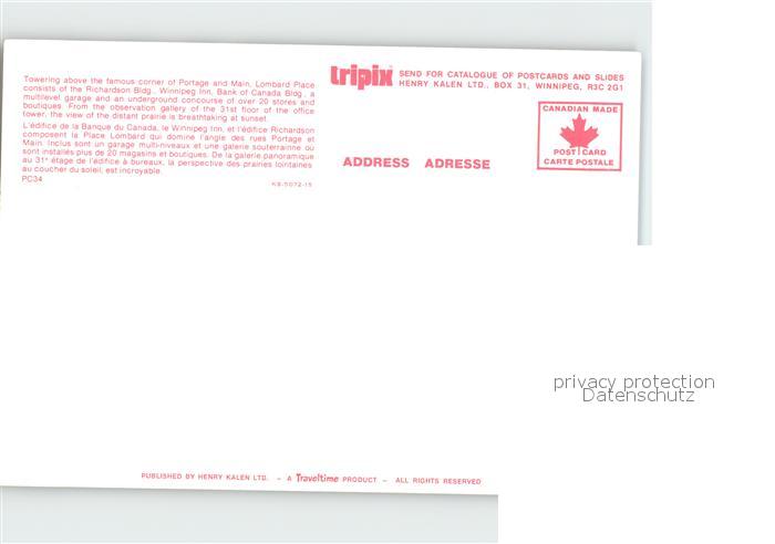 Winnipeg Lombard Place postalisch nicht gelaufen Erhaltung siehe scans