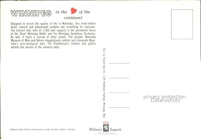 Winnipeg Manitoba Centennial Centre postalisch nicht gelaufen Erhaltung siehe scans