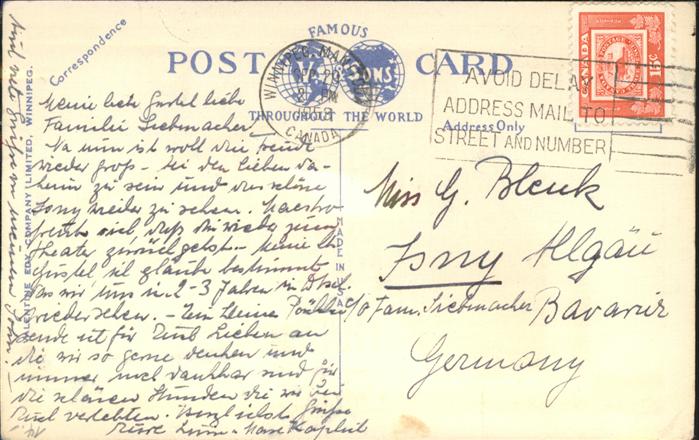 11383922 old postcard Winnipeg The T. Eaton Co. Ltd. Store postalisch gelaufen gute Erhaltung KatCode: 14110
