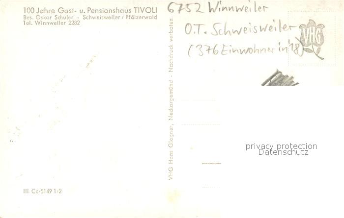 73704802 Winnweiler Jubilaeum 100 Jahre Gast- und Pensionshaus Tivoli postalisch nicht gelaufen Erhaltung siehe scans [LiesaD40] KatCode: 11110007333503