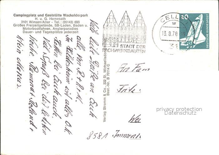 72035601 alte Postkarte Winsen Aller Camping Wacholderpark Weiher Restaurant Gartenterrasse postalisch gelaufen Erhaltung siehe scans KatCode: 11110003351024