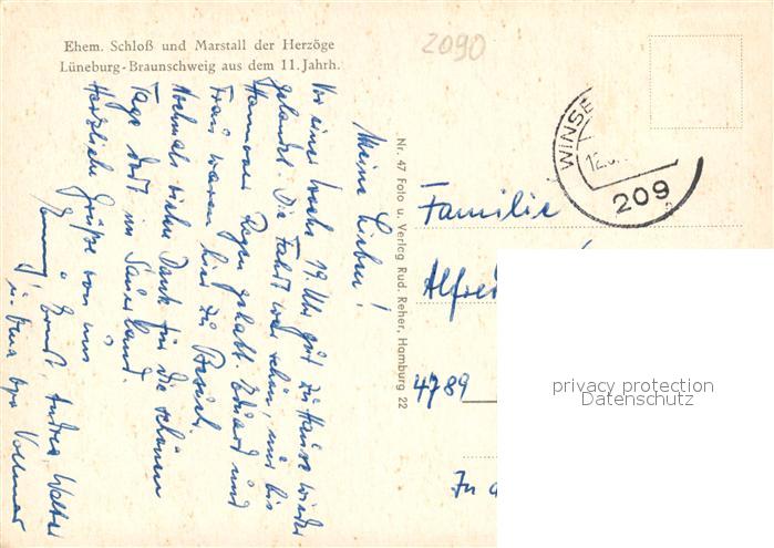73336180 alte Postkarte Winsen Luhe Ehemaliges Schloss und Marstall der Herzoege Lueneburg Braunschweig 11. Jhdt. postalisch gelaufen Erhaltung siehe scans [FriedD77] KatCode: 11110003353040
