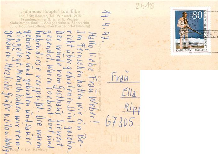 73938794 alte Postkarte Winsen Luhe Faehrhaus Hoopte postalisch gelaufen Fliegeraufnahme Erhaltung siehe scans [FriedD77] KatCode: 11110003353040