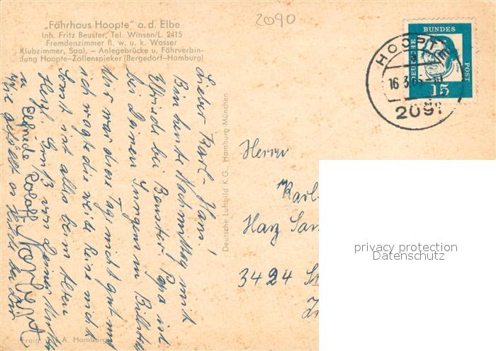 73711409 alte Postkarte Winsen Luhe Fliegeraufnahme Foehrhaus Hoopte an der Elbe postalisch gelaufen Erhaltung siehe scans [LiesaD40] KatCode: 11110003353040