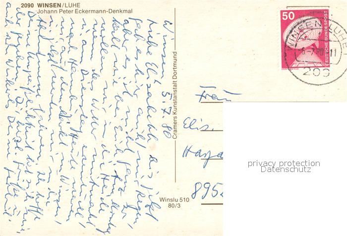 73673876 alte Postkarte Winsen Luhe Johann Peter Eckermann Denkmal postalisch gelaufen Erhaltung siehe scans [WerneD78] KatCode: 11110003353040