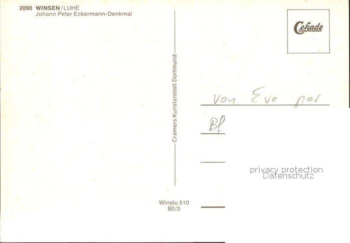 72319865 Winsen Luhe Johnann Peter Eckermann Denkmal postalisch nicht gelaufen Erhaltung siehe scans KatCode: 11110003353040