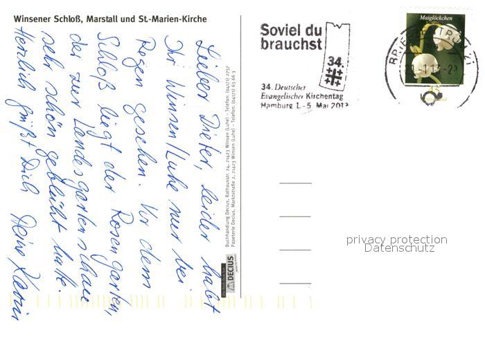 73263597 alte Postkarte Winsen Luhe Schloss Marstall St. Marien-Kirche postalisch gelaufen Erhaltung siehe scans [LiesaD40] KatCode: 11110003353040
