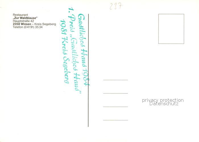 73569807 Winsen Neumuenster Restaurant Zur Waldklause Gastraeume postalisch nicht gelaufen Erhaltung siehe scans [WerneD78] KatCode: 11110001060100