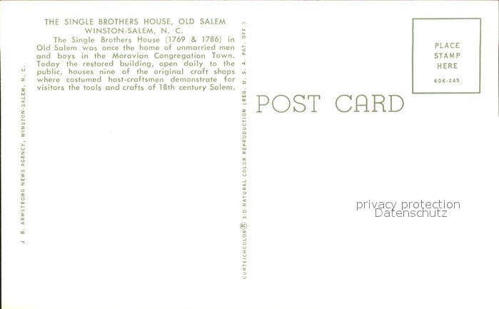 71964738 Winston Salem Singele Brothers House Old Salem postalisch nicht gelaufen Erhaltung siehe scans KatCode: 14140350000000
