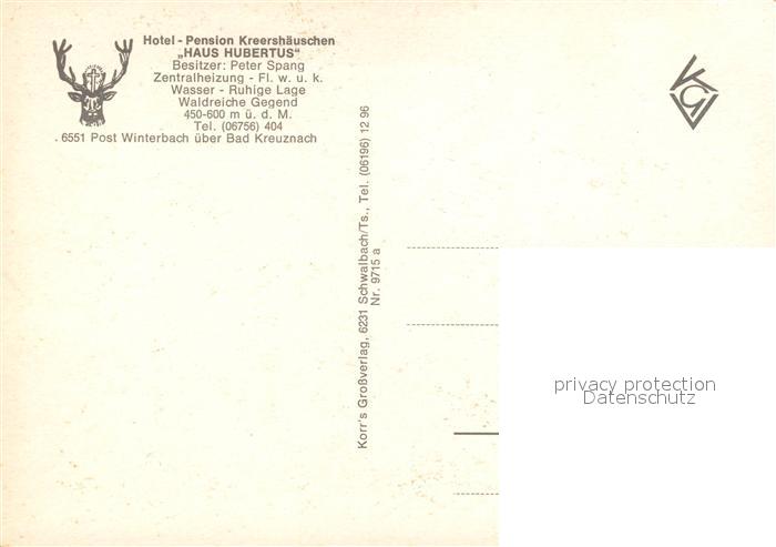 73249939 Winterbach Bad Kreuznach Alteburg Hotel Cafe Kreershaeuschen Hubertus Hirschbrunft Gaestehaus postalisch nicht gelaufen Erhaltung siehe scans [WerneD78] KatCode: 11110007133115