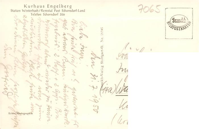 73899676 Winterbach Remstal BW Kurhaus Engelberg postalisch nicht gelaufen Erhaltung siehe scans [FriedD77] KatCode: 11110008119086