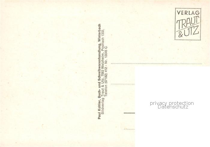 73854250 Winterbach Remstal BW Marktbrunnen Neue Schule mit kath Kirche Freibad Stausee postalisch nicht gelaufen Erhaltung siehe scans [WerneD78] KatCode: 11110008119086