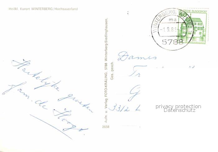 72654921 alte Postkarte Winterberg Hochsauerland postalisch gelaufen Erhaltung siehe scans [LiesaD40] KatCode: 11110005958048