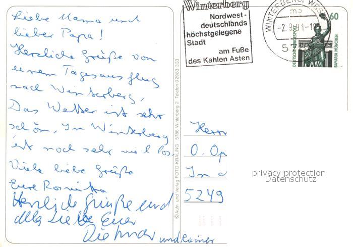 73116123 alte Postkarte Winterberg Hochsauerland postalisch gelaufen Erhaltung siehe scans [NatalD47] KatCode: 11110005958048
