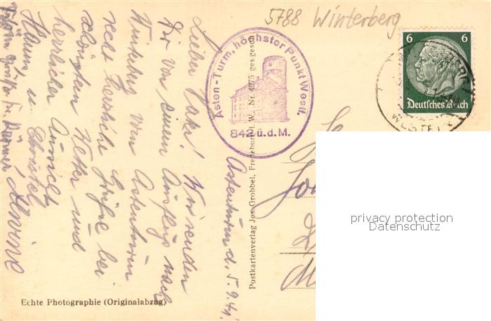 73559155 alte Postkarte Winterberg Hochsauerland Astenbergturm postalisch gelaufen Erhaltung siehe scans [LiesaD40] KatCode: 11110005958048
