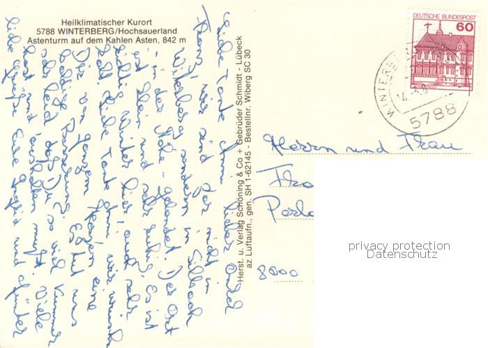 73779841 alte Postkarte Winterberg Hochsauerland Astenturm auf dem Kahlen Asten postalisch gelaufen Fliegeraufnahme Erhaltung siehe scans [FriedD77] KatCode: 11110005958048