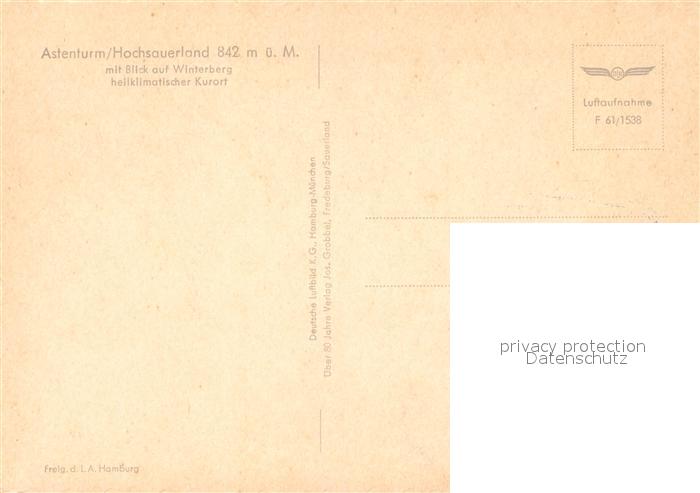 73080511 Winterberg Hochsauerland Astenturm Berghotel Fliegeraufnahme postalisch nicht gelaufen Erhaltung siehe scans [FriedD77] KatCode: 11110005958048