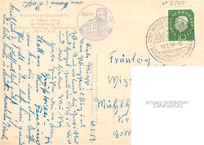 73100059 alte Postkarte Winterberg Hochsauerland Astenturm Gaststaette Fliegeraufnahme postalisch gelaufen Erhaltung siehe scans [WerneD78] KatCode: 11110005958048