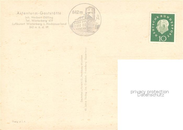 73743239 alte Postkarte Winterberg Hochsauerland Astenturm Gaststaette Fliegeraufnahme postalisch gelaufen Erhaltung siehe scans [FriedD77] KatCode: 11110005958048