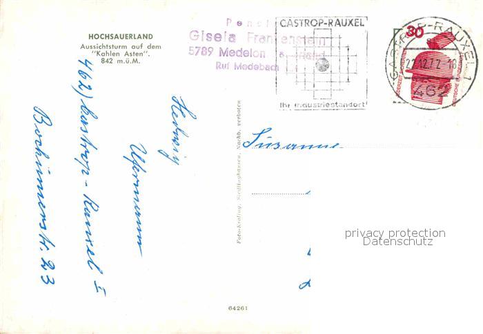 72919196 alte Postkarte Winterberg Hochsauerland Aussichtsturm Kahler Asten postalisch gelaufen Erhaltung siehe scans [NatalD47] KatCode: 11110005958048
