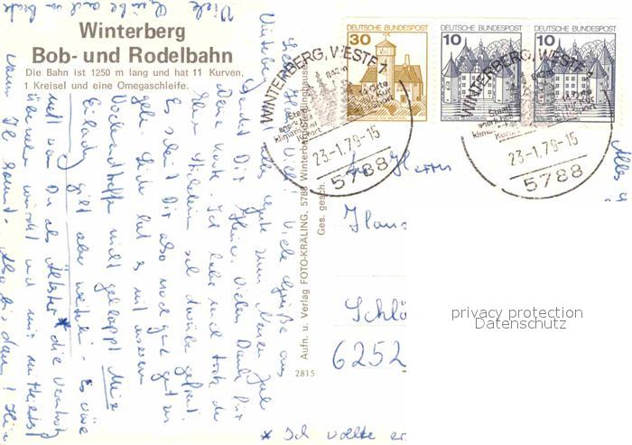 72852839 alte Postkarte Winterberg Hochsauerland Bob und Rodelbahn Wintersport postalisch gelaufen Erhaltung siehe scans [FriedD77] KatCode: 11110005958048