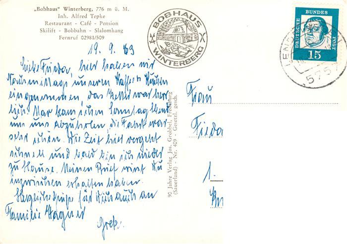 73924210 alte Postkarte Winterberg Hochsauerland Bobhaus Restaurant Terrasse postalisch gelaufen Erhaltung siehe scans [FriedD77] KatCode: 11110005958048