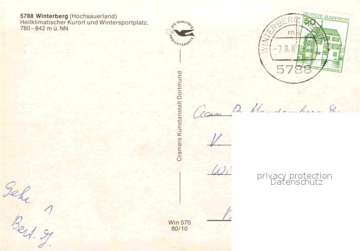 72864967 alte Postkarte Winterberg Hochsauerland Bobhaus Sprungschanze Kurpark Kurzentrum postalisch gelaufen Erhaltung siehe scans [LiesaD40] KatCode: 11110005958048