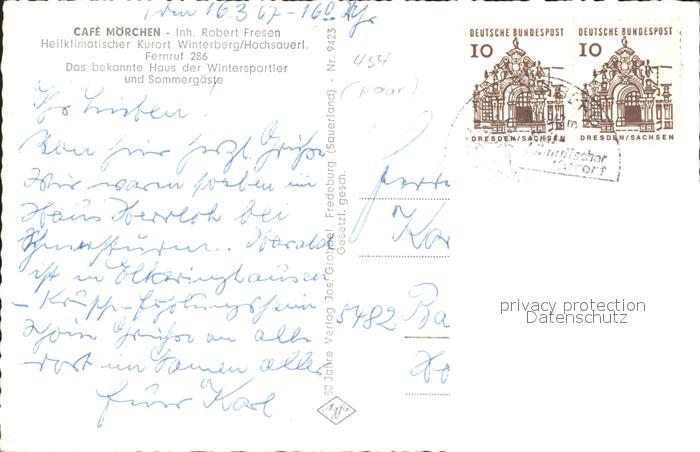 72045231 alte Postkarte Winterberg Hochsauerland Cafe Moerchen Gaststube postalisch gelaufen Erhaltung siehe scans KatCode: 11110005958048