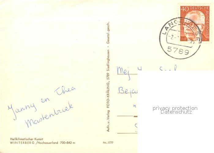 73317203 alte Postkarte Winterberg Hochsauerland Fliegeraufnahme postalisch gelaufen Erhaltung siehe scans [LiesaD40] KatCode: 11110005958048