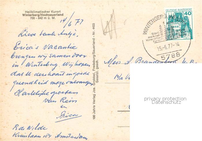 73783315 alte Postkarte Winterberg Hochsauerland Fliegeraufnahme postalisch gelaufen Erhaltung siehe scans [WerneD78] KatCode: 11110005958048
