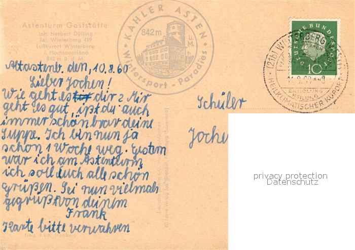 73131391 alte Postkarte Winterberg Hochsauerland Fliegeraufnahme Astenturm Gaststaette postalisch gelaufen Erhaltung siehe scans [NatalD47] KatCode: 11110005958048