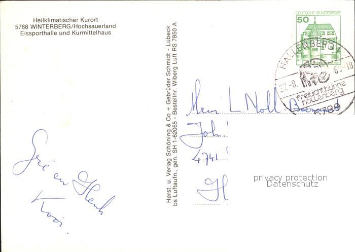72270200 alte Postkarte Winterberg Hochsauerland Fliegeraufnahme mit Eissporthalle und Kurmittelhaus postalisch gelaufen Erhaltung siehe scans KatCode: 11110005958048