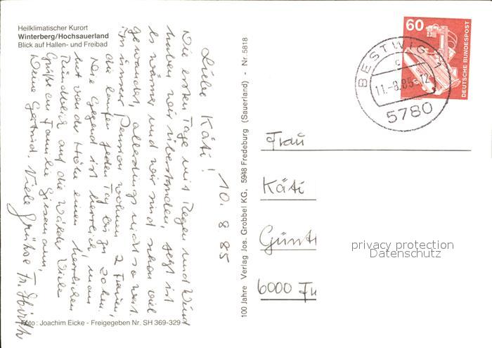 72493023 alte Postkarte Winterberg Hochsauerland Fliegeraufnahme mit Freibad postalisch gelaufen Erhaltung siehe scans KatCode: 11110005958048