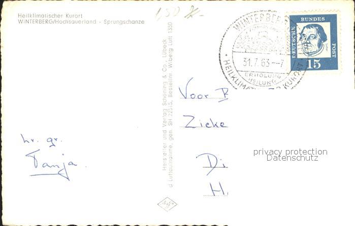 72030527 alte Postkarte Winterberg Hochsauerland Fliegeraufnahme Sprungschanze postalisch gelaufen Erhaltung siehe scans KatCode: 11110005958048