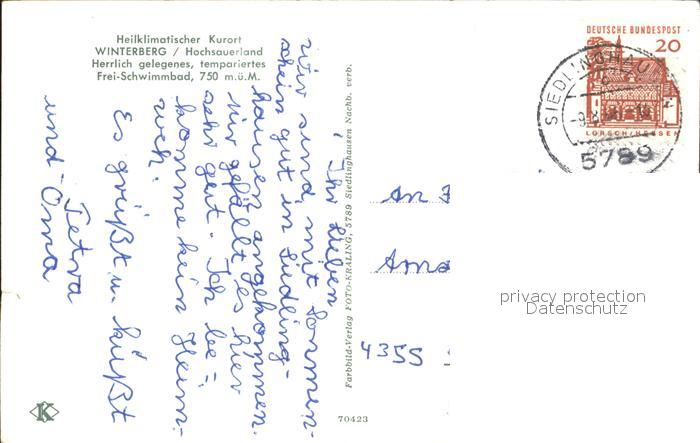 72249341 alte Postkarte Winterberg Hochsauerland Freischwimmbad Sprungturm postalisch gelaufen Erhaltung siehe scans KatCode: 11110005958048