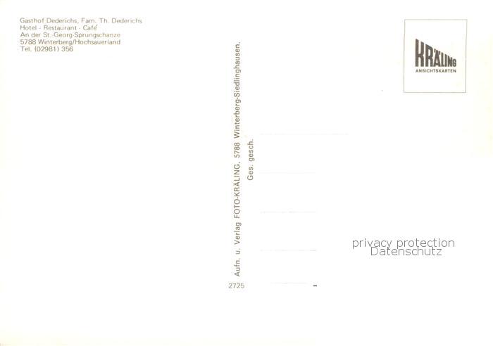 73836435 Winterberg Hochsauerland Gasthof Dederichs Hotel Restaurant postalisch nicht gelaufen Erhaltung siehe scans [FriedD77] KatCode: 11110005958048