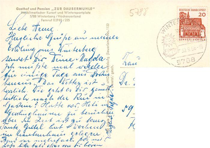 73888833 alte Postkarte Winterberg Hochsauerland Gasthof Pension Zur Daubermuehle postalisch gelaufen Erhaltung siehe scans [FriedD77] KatCode: 11110005958048
