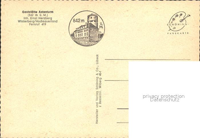 72225634 Winterberg Hochsauerland Gaststaette Astenturm postalisch nicht gelaufen Erhaltung siehe scans KatCode: 11110005958048