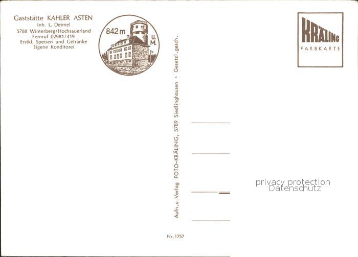 72284941 Winterberg Hochsauerland Gaststaette Kahler Asten postalisch nicht gelaufen Erhaltung siehe scans KatCode: 11110005958048